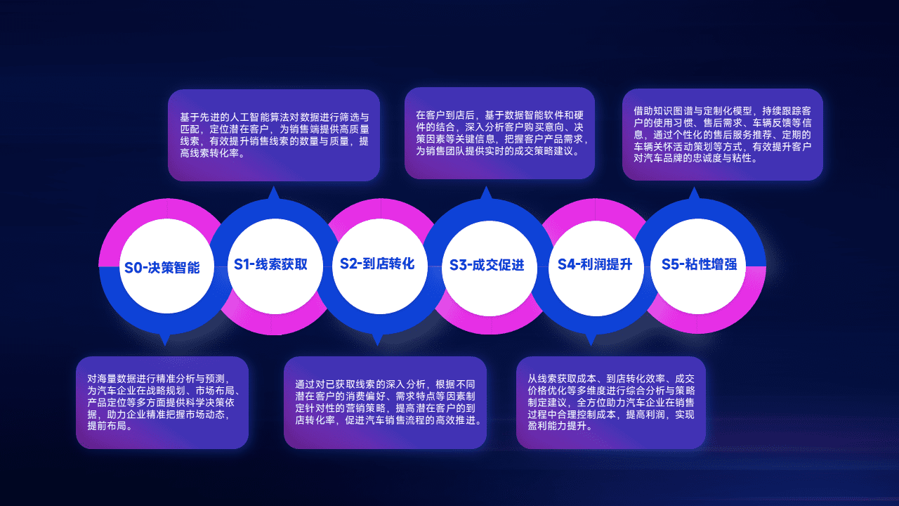 通过拓宽潜在客户来源、、、、优化线索分配并提高到店转化率,,以增强销售效率。。同时,,,,利用线索数据不断优化分析模型,,,,有效提升转化率,,扩大营销影响力。。。